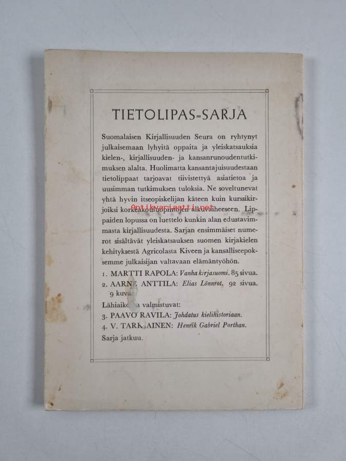 Sarja: Tietolipas No 2Asiasanat: elämäkerrat, kansanrunous, Kalevala, kanteletar