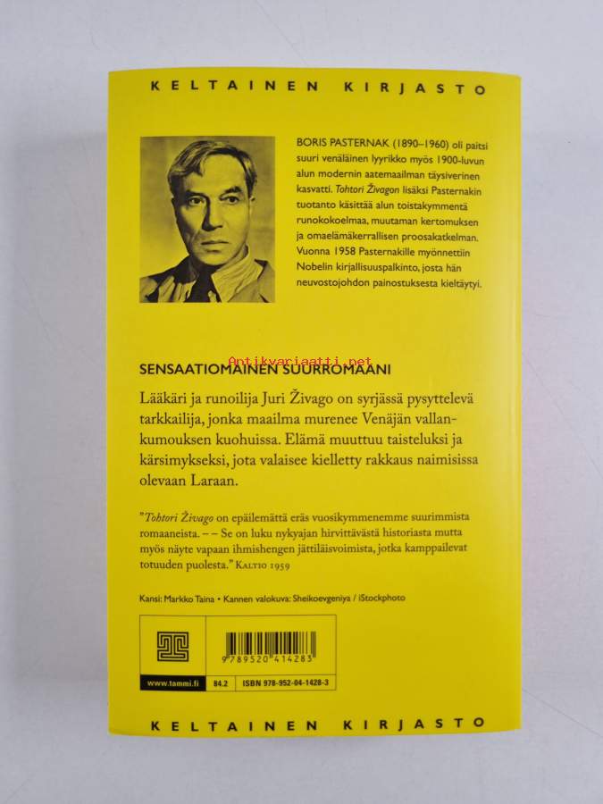 Muu(t) tekijä(t): Juhani Konkka, Arvo Turtiainen ym.Sarja: Keltainen kirjasto 20Alkuteos: Doktor ŽivagoAsiasanat: yhteiskunnallinen muutos, lääkärit, kielletty rakkaus