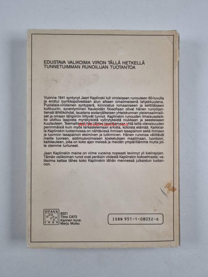 Hyvä. Pientä käytön jälkeä kansissa, selkämyksessä aavistus vinoutta. Kansipaperin kunto: joitain repeämiä/kulumaa & tahraisuutta