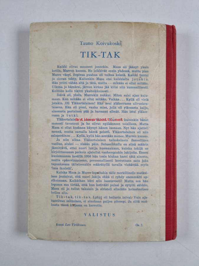 Tyydyttävä. Hieman läikkää kansissa, hieman kulumaa kansissa, pienoista repeämää kulmissa, selkämyksessä hieman vinoutta. takakannen sisäpuolella pintarepeämää