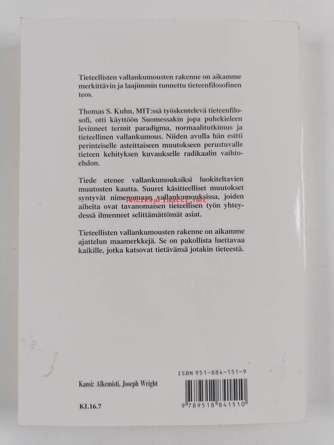 Muu(t) tekijä(t): Kimmo PietiläinenAlkuteos: The structure of scientific revolutionsAsiasanat: historia, maailmankuva, filosofia, tiede, tieteen edistyminen, tieteenfilosofia, tieteellinen tieto, paradigmat, tieteenteoria, tieteellinen ajattelu