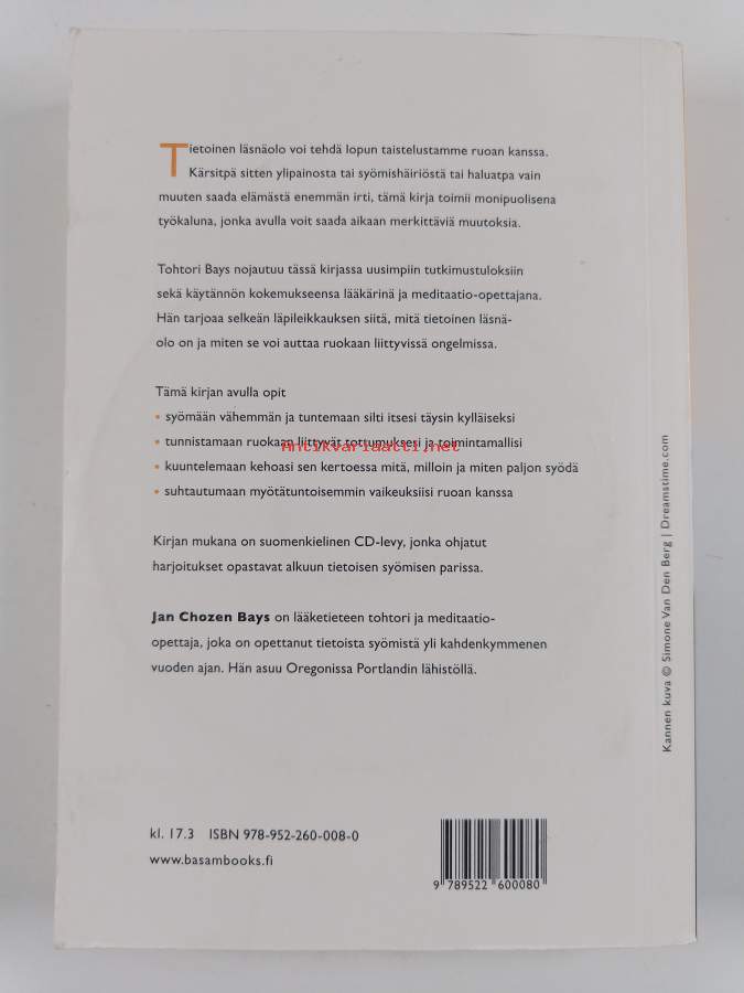 Muu(t) tekijä(t): Jon Kabat-Zinn, Leena (suom.) SiitonenSarja: Viisas elämäAlkuteos: Mindful EatingAsiasanat: tietoisuus, ruokatottumukset, nälkä, tietoinen läsnäolo, mindfulness