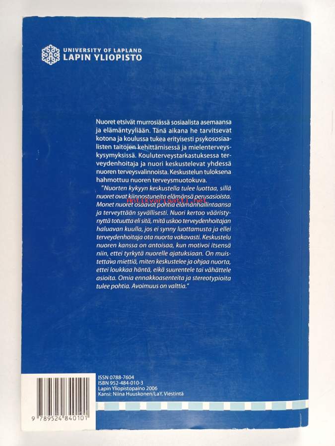 Merkinnät: omistajamerkintäSarja: Acta Universitatis Lapponiensis 97Asiasanat: nuoret, väitöskirjat, koululaiset, terveyden edistäminen, terveydenhoitajat, kouluterveydenhuolto, mittarit (mittaus), terveystarkastukset
