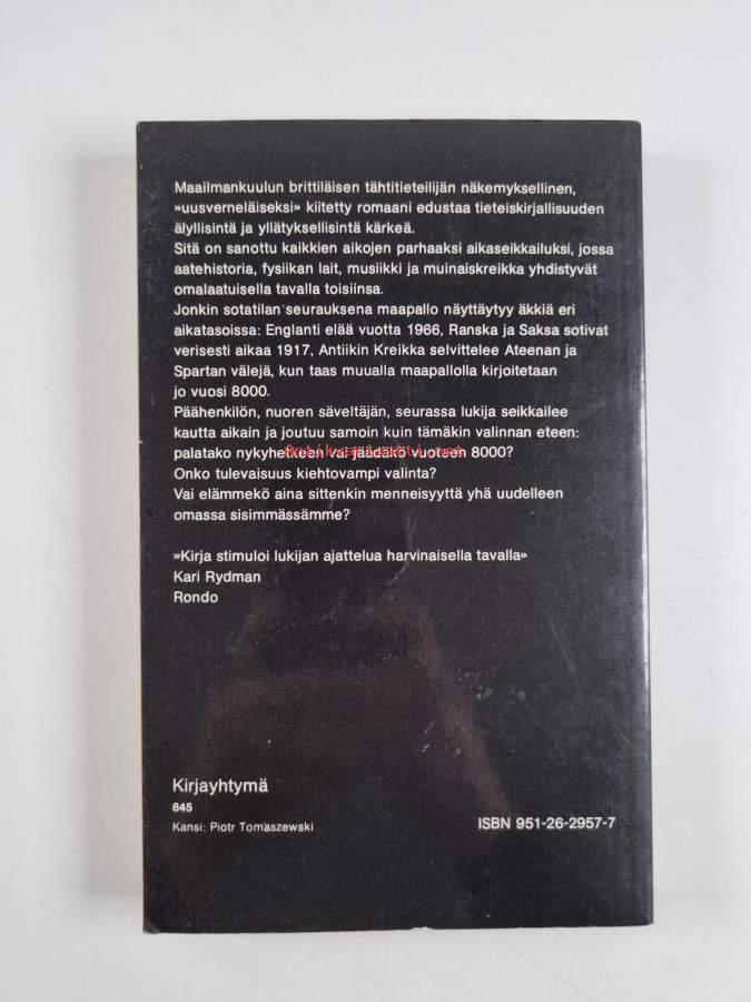 Hyvä. Pienoista taitejälkeä kansissa, hieman kulumaa kansissa, pienoista rispaantumaa reunoilla ja kulmissa