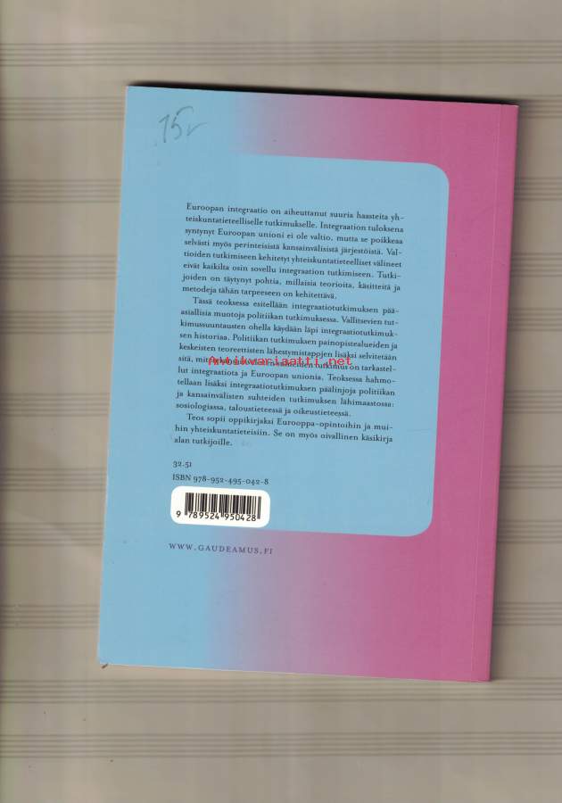 Ensimmäinen suomenkielinen EU:n integraation teorioita esittelevä kirja. Se esittelee teoriakeskustelun vaiheita ja yhteyksiä integraation poliittisen kehitykseen. Kirja sopii EU-tutkimuksen tekijöille, sekä alan opiskelijoille että varttuneemmillekin tutkijoille.-Pieni Helposti kuori