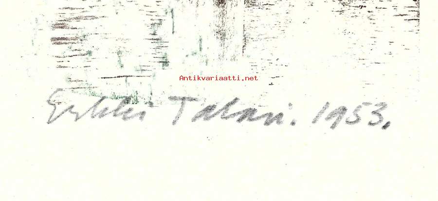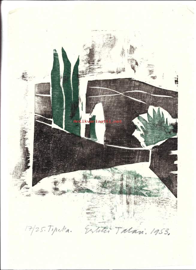 Erkki Talari, "Maisema" Puupiirros sign 1952 tpla 17/25 , 30x20 cm kehystämätön