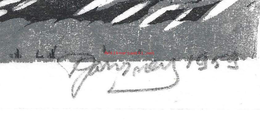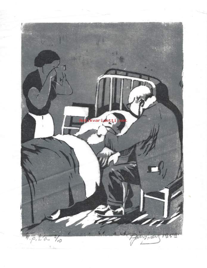 "Sairasvuoteen äärellä" Puupiirros sign 1959 tpla 3/10 , 22x20 cm kehystämätön