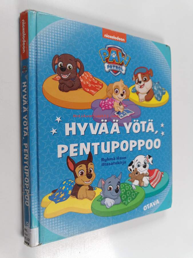 sivuilla hieman kupruilua ja repeämiä reunoilla, ensimmäisellä aukeamalla teippausta