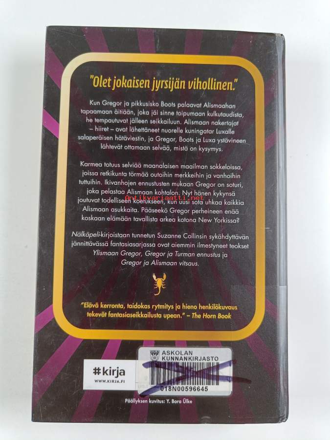 Muu(t) tekijä(t): Helene BützowMerkinnät: omistajamerkintä (leima)Sarja: Alismaan tarinat 4Alkuteos: Gregor and the marks of secret