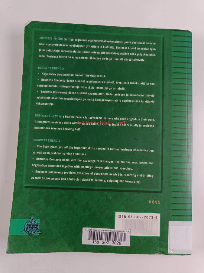Muu(t) tekijä(t): Tuija JunkkariMerkinnät: omistajamerkintä (leima)Asiasanat: liike-elämä, liiketalous, englannin kieli, oppikirjat
