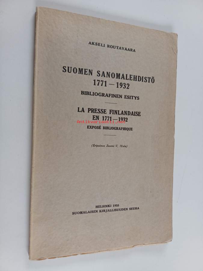Suomen sanomalehdistö 1771-1932 : bibliografinen esitys = exposé bibliographique = La presse Finlandaise en 1771-1932 (lukematon)