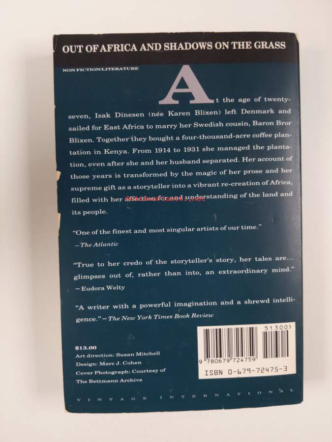 Out of Africa publishers 1998