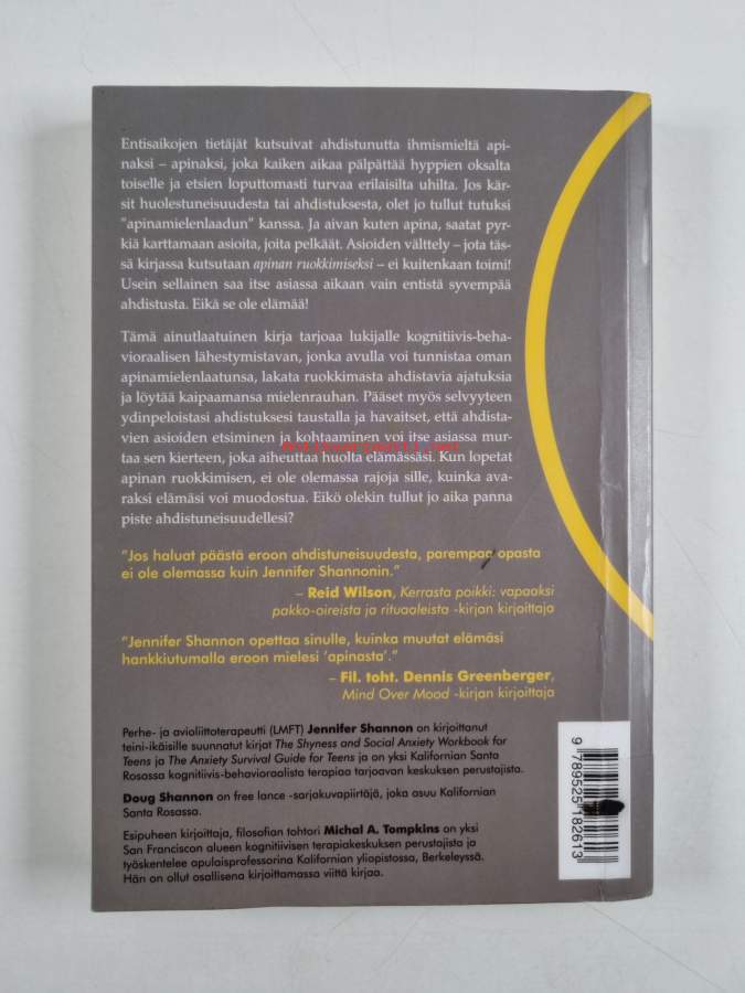 Muu(t) tekijä(t): Risto Mikkonen, Doug ShannonMerkinnät: omistajamerkintä (leima)Alkuteos: Don't feed the monkey mindAsiasanat: mielenterveys, onnellisuus, tunteet, itsekasvatus, elämänhallinta, ahdistus, huolestuneisuus, mielenrauha, tavoitteet, kognitiivinen käyttäytymisterapia, pelko, itseapu (psykologia)