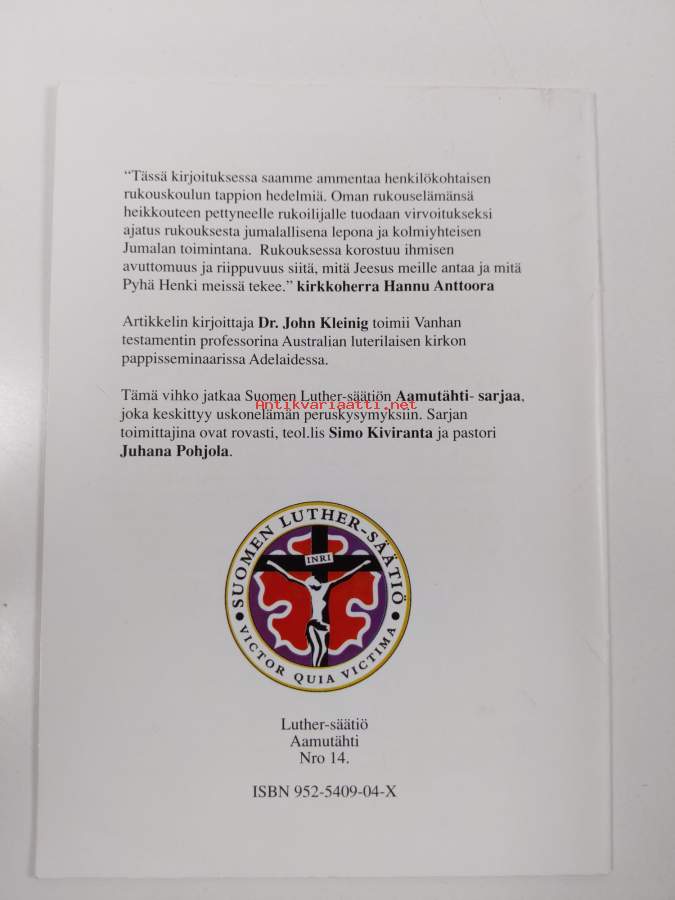 Muu(t) tekijä(t): Juhana PohjolaSarja: Aamutähti nro 14Alkuteos: The gift of prayerAsiasanat: esirukous, rukoileminen
