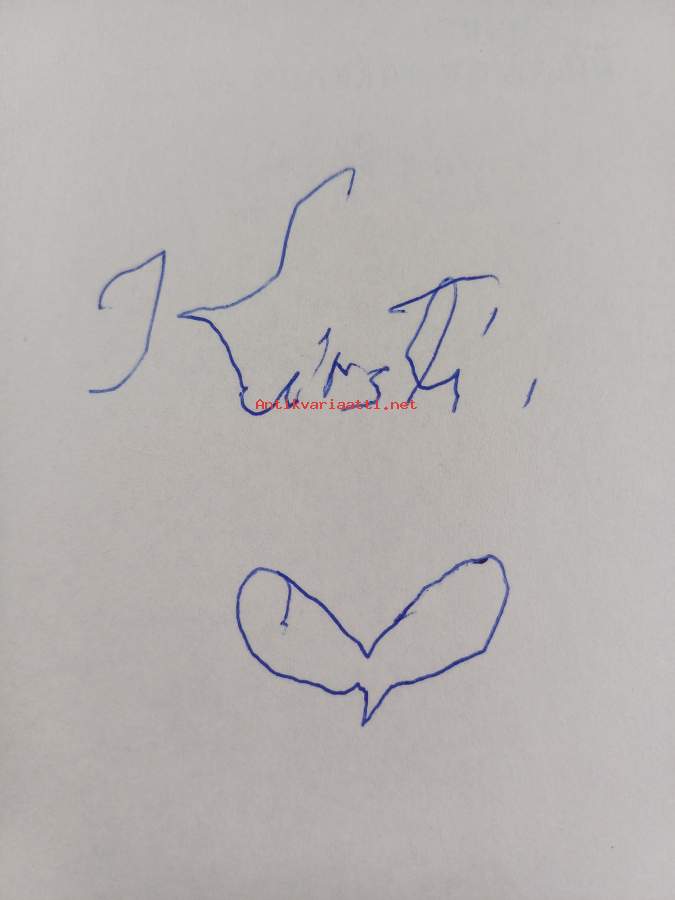 Hyvä. Tarkempi kuntoluokka: K3+ ; Hieman käytön jälkeä kansissa, selkämyksessä aavistus vinoutta. Kansipaperin kunto: pientä kulumaa / signeerattu etunimellä