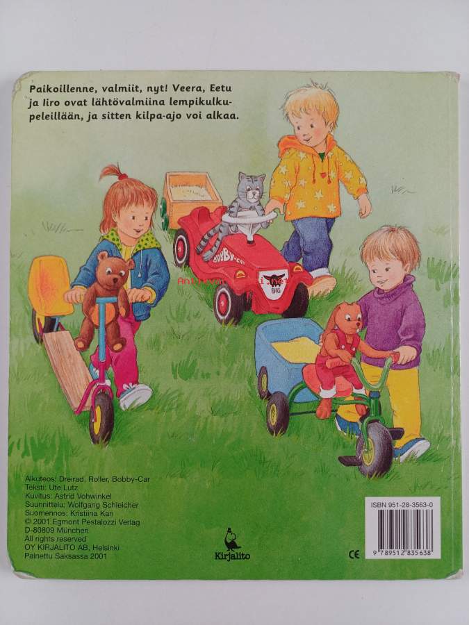 Muu(t) tekijä(t): Kristiina Kari, Astrid VohwinkelAlkuteos: Dreirad, roller, bobby-carAsiasanat: paksulehtiset kirjat, leikkiautot -