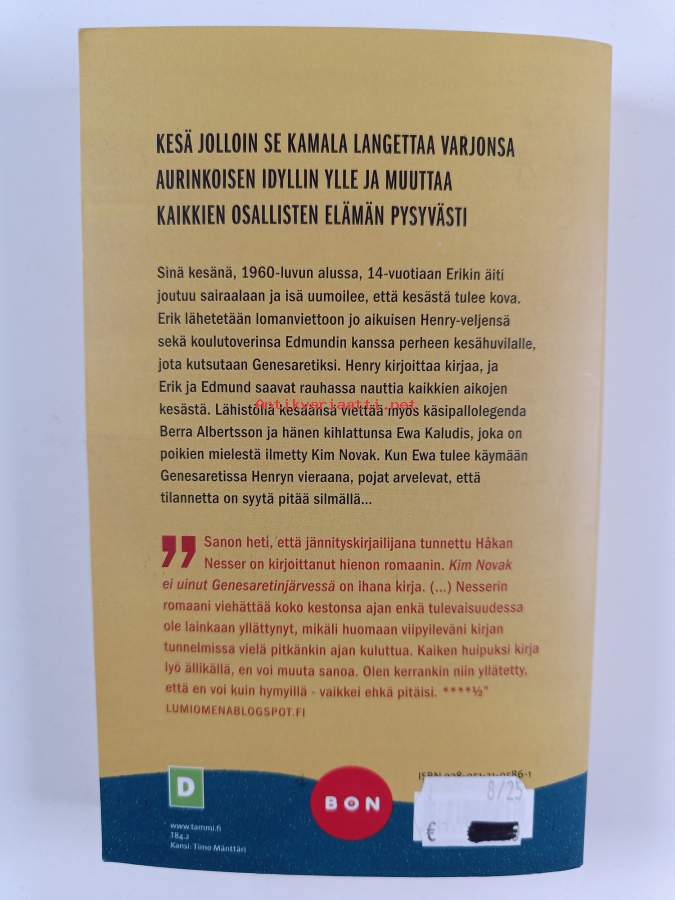 Muu(t) tekijä(t): Saara VillaSarja: BonAlkuteos: Kim Novak badade aldrig i Genesarets sjöAsiasanat: käännökset, romaanit, suomenkielinen kirjallisuus