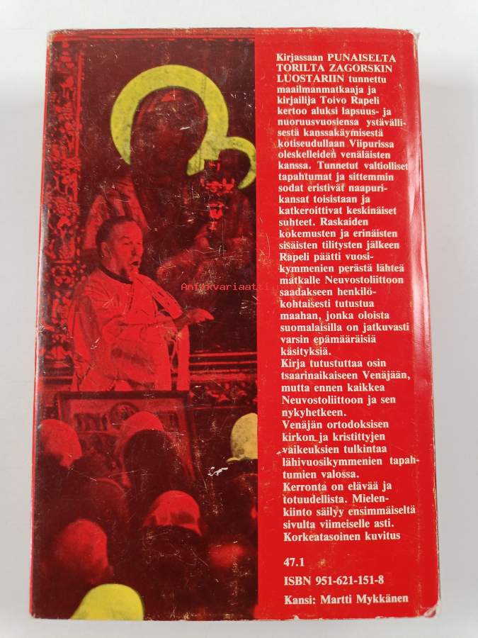 Hyvä. Pienoista kolhua selkämyksen päissä, pienoista kulumaa kansissa, selkämyksessä hieman vinoutta. Kansipaperin kunto: jonkin verran kulumaa/pienoisia repeämiä