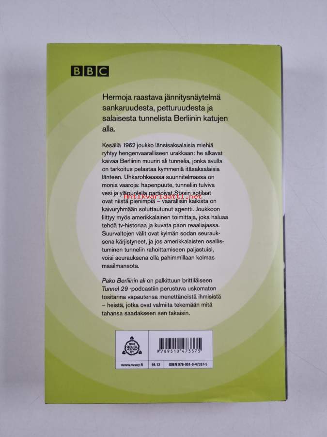 Muu(t) tekijä(t): Jorma-Veikko SappinenAlkuteos: Tunnel 29Asiasanat: historia, rakentaminen, kaupungit, auttaminen, vakoilu, kylmä sota, suurvaltapolitiikka, pako, Berliinin muuri, etupiirit, byggande, flykt, spionage, tunnelit, hjälp, kalla kriget, stormaktspolitik, Berlinmuren, tunnlar
