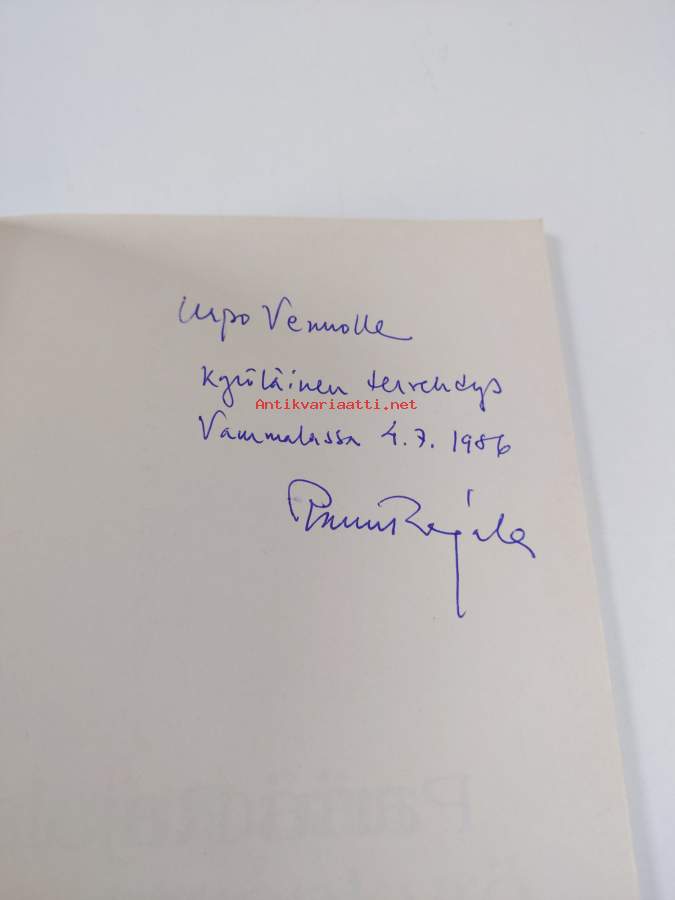 Tyydyttävä. Tarkempi kuntoluokka: K2+ ; Jonkin verran läikkää takakannessa, hieman kulumaa. tekijän signeeraama omiste, loppupään sivuilla pienoista aaltoilua/kuprua