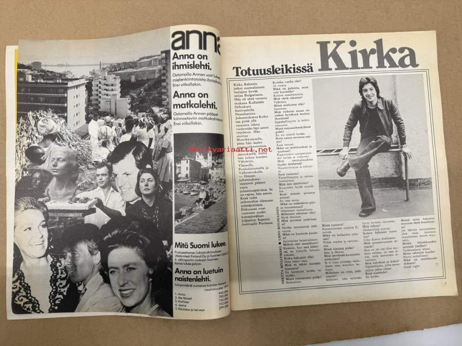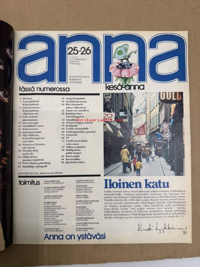Anna 1975 nr 25-26, ilmestynyt 17.6.1975, Totuusleikissä Kirka, Silja Mellanen, Rita Hayworth, Juvan Carlos ja Sofia elivät Lapin kesäyön