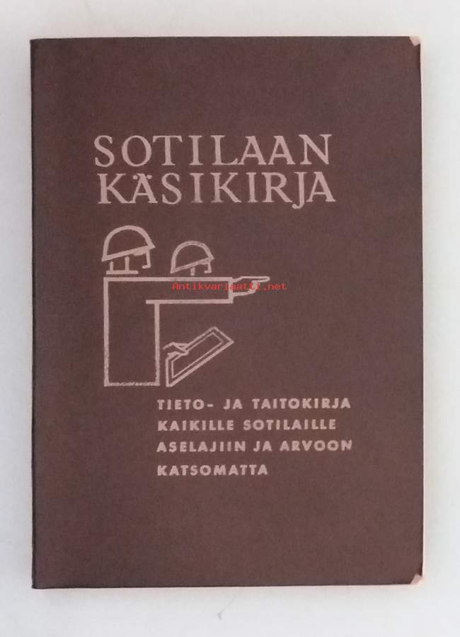 Historiallinen taitokirja kaikille sotilaille aselajiin ja arvoon katsomatta; sisältää perusohjeita sotilaan taitoihin, sääntöihin ja maanpuolustukseen liittyen. Dimensiot 18 ¤ 13 cm. Kuvitettu.