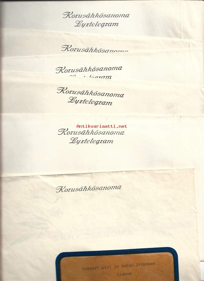 1940-luvun korusähkösanoma 6 kpl erä alkuperäisissä kuorissa