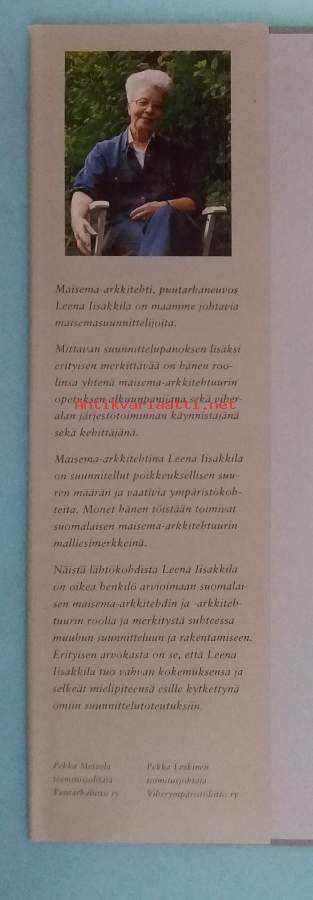 Maisema-arkkitehtin teos esittelee Iisakkilan laajaa elämäntyötä, joka ulottuu 1960-luvulta aina 1990-luvun lopulle saakka. Kirja sisältää runsaasti kuvitusta, karttoja sekä esimerkkejä Iisakkilan toteuttamista puisto- ja pihasuunnitelmista. Kuvitettu. 30 ¤ 23 cm
