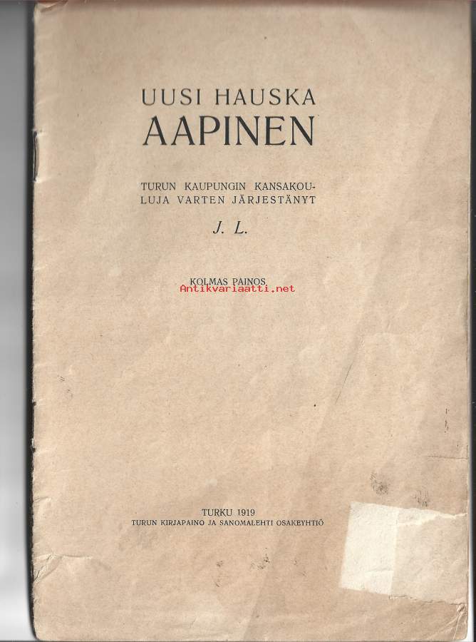 "Uusi hauska aapinen / Turun kaupungin kansakouluja varten" on Jenny Lindgrenin (J.L.) toimittama, ensimmäisen kerran noin vuonna 1910 julkaistu historiallinen oppikirja. Kuvitetusta ja suositusta aapisesta otettiin useita painoksia 1920-luvulle saakka, ja se oli suunnattu Turun koulujen alimmille luokille. Tietoja teoksesta:Toimittaja: Jenny Lindgren (J.L.).Julkaisuvuodet: Ensimmäinen painos ilmestyi noin 1910, uusia painoksia mm. 1919 ja 1928.Kustantaja: Turun Kirjapaino ja Sanomalehti Oy.Koko: 20-sivuinen, kuvitettu 23 cm korkea teos.Sisältö: Aapinen sisälsi tarinoita ja opetusta, ja sen on mainittu korostaneen äidin neuvojen tärkeyttä. Kirja on nykyään harvinainen keräilykohde