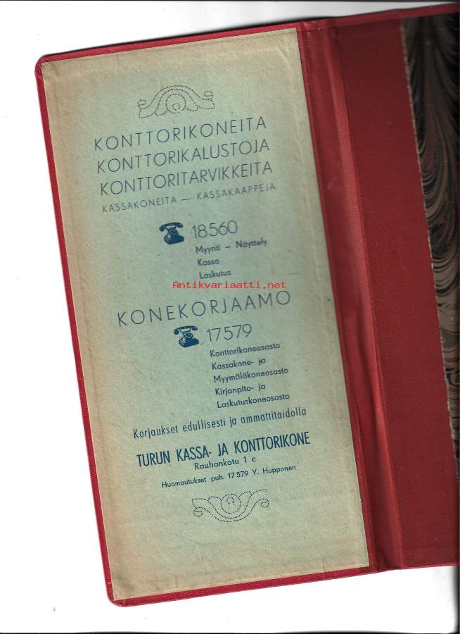 Turun Kassa- ja Konttorikone, Rauhankatu 1 c - konttorikoneita ja konekorjaamo - kansio 25x14 cm