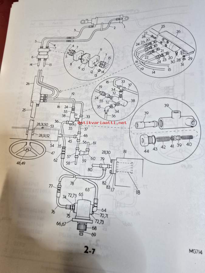 MG tiehöylän varaosa luettelo. Vuodelta 1974.