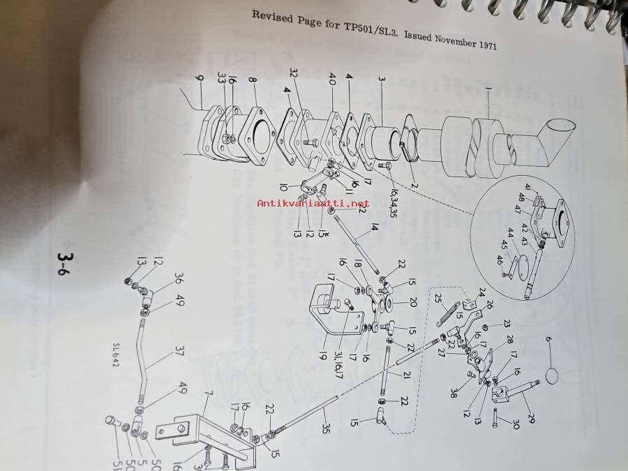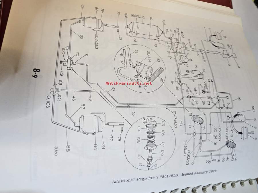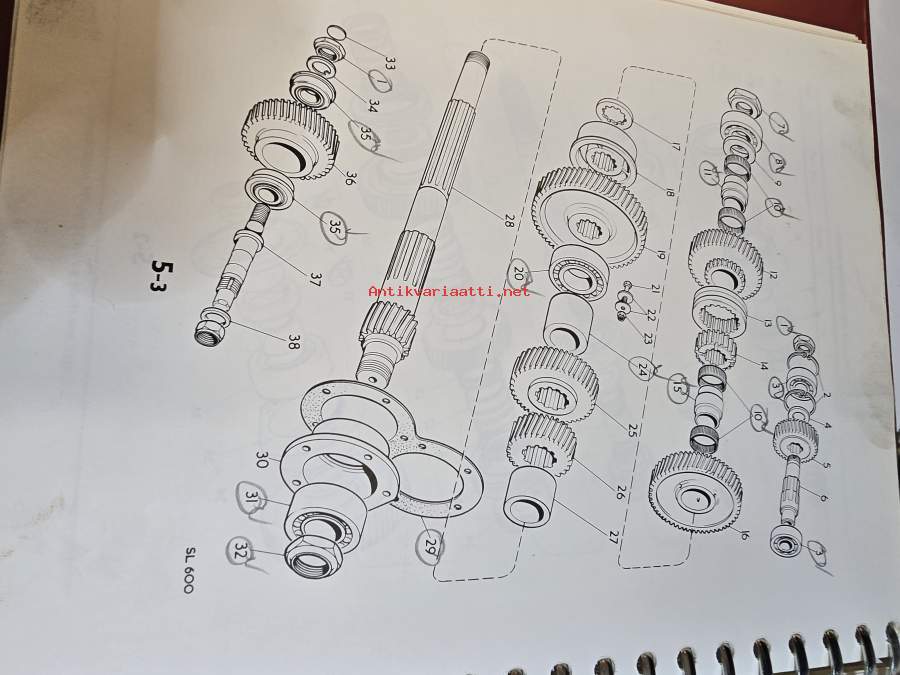 SL 340 dumpperin varaosa luettelo. Julkaistu 1975.