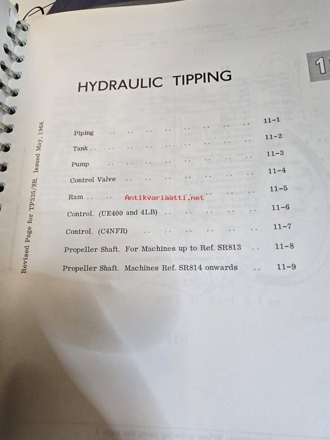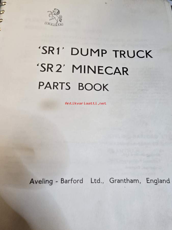 SR 1 & SR 2 dumpperin varaosa luettelo. Julkaistu 197?