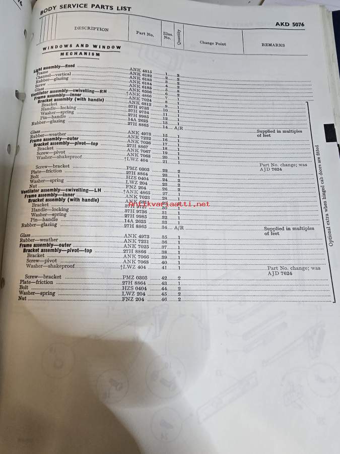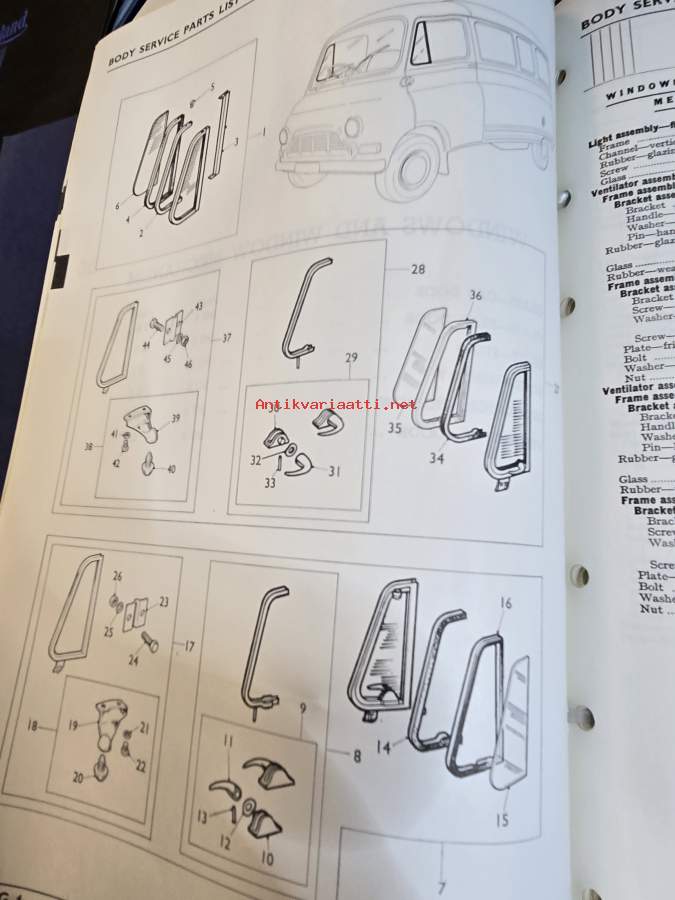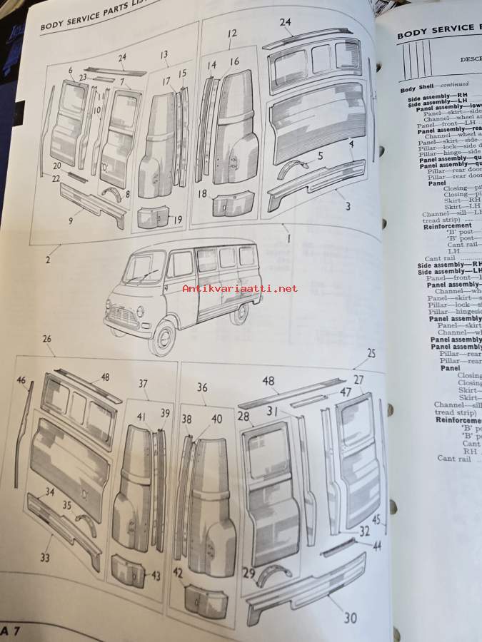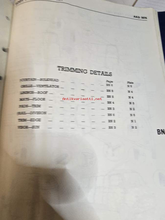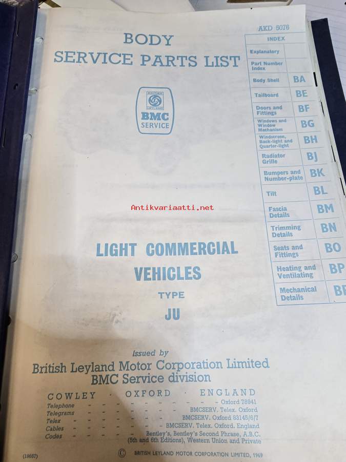 BMC Body Service Parts List, Light Commercial Vehicles Type JU (AKD 5076) - Varaosaluettelo, Katso tarkemmat mallit ja sisällysluettelo kuvista