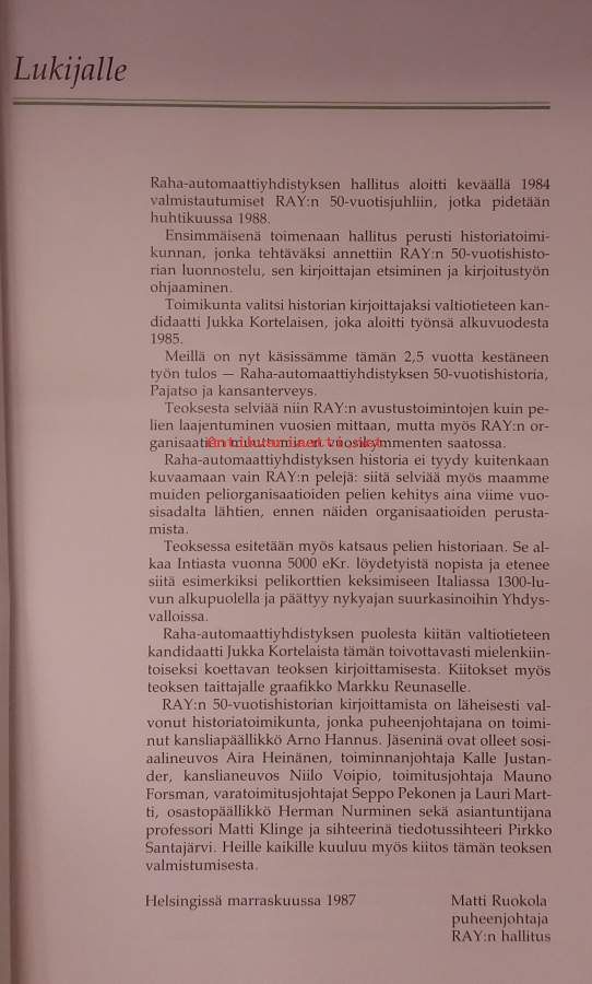 Kirja esittelee automaattien kehitystä puupajatsoista sähköisiin peleihin + kertoo Raha-automaattiyhdistyksen synnystä, toiminnasta ja merkityksestä suomalaiselle terveydenhuollolle ja sosiaalityölle. Kuvitettu. Dimensiot 29 ¤ 18 cm.