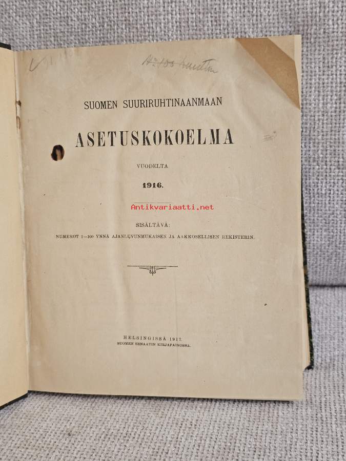 Suomen suuriruhtinaanmaan asetuskokoelma vuodelta 1916