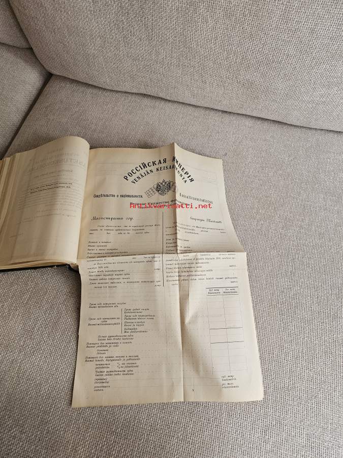 Mukana erilaisia liitteitä; todistuksia, kaavakkeita yms