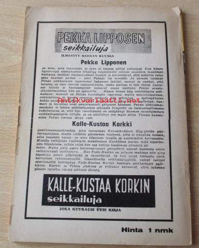 Kansissa kulumaa ja etukansissa pieni repeämä, sivuiltaan siisti ehjä, edellisen omistajan nimi, Posittus kirjepakettina, postimaksu 5,50 €