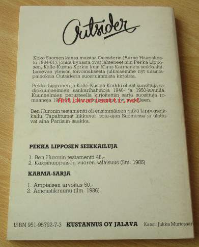 Ben Huronin Testamentti (Outsider) Pekka Lipposen seikkailuja no 1