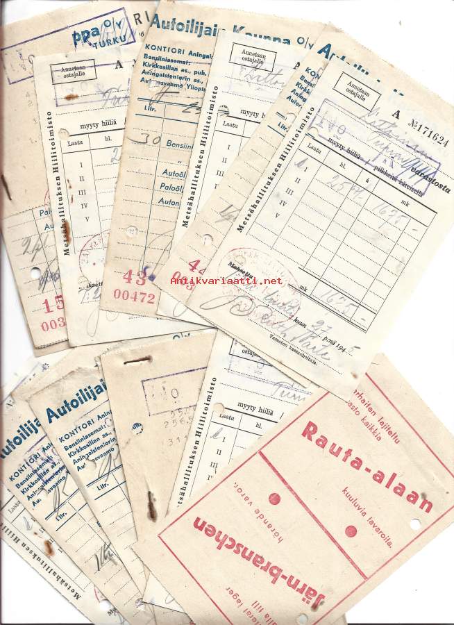 Paragon kuitteja - firmalomake n 15 eril km 1940-luku