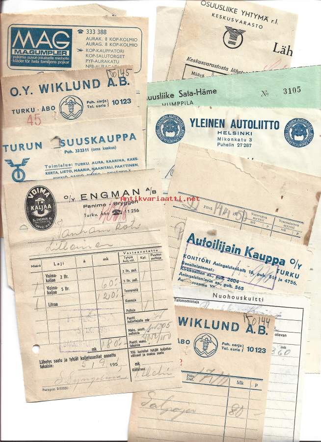 Paragon yms kuitteja - firmalomake yli 10 kpl 1940-60 luku