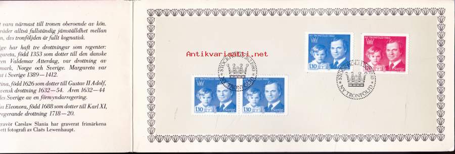 Filatelia Ruotsi -FDC - Ny Tronföljd 1980 - Kruuunperimysjärjestyksen muutos 26.2.1980 (Victoria seuraava hallitsija)