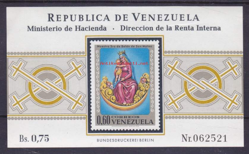 Filatelia Venezuela - postituore ** blokki/pienoisarkki, 1970. (Minsterio de Hacienda). Numeroitu blokki