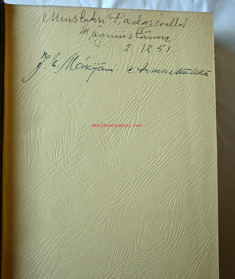Kansissa kulumaa ja etusivulla kirjoitus, katso kuvista