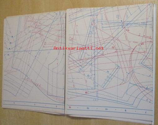 Kaava-arkit mukana, irti lehdestä. sivuiltaan siisti ehjä, Kansissa kulumaa ja takakannessa osoitelappu nimi ylivedety ja palanen pois, repeämiä, Kuvan mukaisessa kunnossa, Postitus kirjepakettina