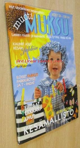 Muoti Muksu Lasten muoti- ja Kaavalehti Kesä N:o 2 1996 kaava-arkit mukana