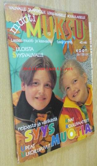 Muoti Muksu Lasten muoti- ja Kaavalehti syksy N:o 3 1996 kaava-arkit mukana