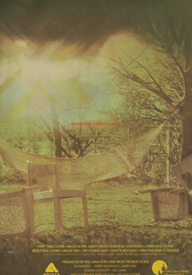 Arista 1977 USAA1 Part Time Lover 3:52A2 Back In The Alley 4:18A3 Rock And Roll Hideaway 3:14A4 Stars And Scars 8:19B1 Beautiful Loser 4:03B2 Uncle Ned 3:49B3 Tattooed Lady 4:12B4 Nasty Notions 3:20B5 Waiting For A Change 4:45- Postipaketti