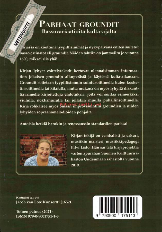 Kirjassa on koottuna tyypillisimmät ja nykypäivänä eniten soitetut basso ostinatot eli groundit. Näiden tahtiin on jammailtu jo vuonna 1600, miksei siis yhä!Kirjan lyhyet esittelytekstit kertovat olennaisimman informaation jokaisen groundin alkuperästä ja käytöstä kulta-aikanaan. Groundit soitetaan tyypillisimmin sointusoittimella kuten kosketinsoittimella tai kitaralla, mutta mukana on myös lyhyitä diskanttiavaimelle kirjoitettuja ehdotuksia, joita voi soittaa esimerkiksi viululla, nokkahuilulla tai jollakin muulla puhallinsoittimella. Kirja rohkaisee myös omaan improvisointiin groundien ja niiden lyhyiden sopraanomelodioiden pohjalta.- Suuri Helposti kuori