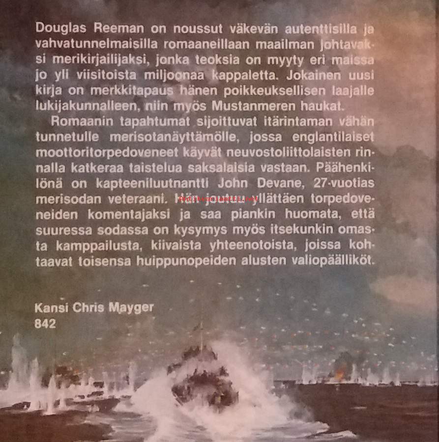 Brittiläinen moottoritorpedoveneyksikkö lähetetään auttamaan neuvostoliittolaisia liittolaisiaan taistelussa saksalaisia vastaan. Autenttisesti kuvattu merisota romaani. Dimensiot 21 ¤ 14 cm.